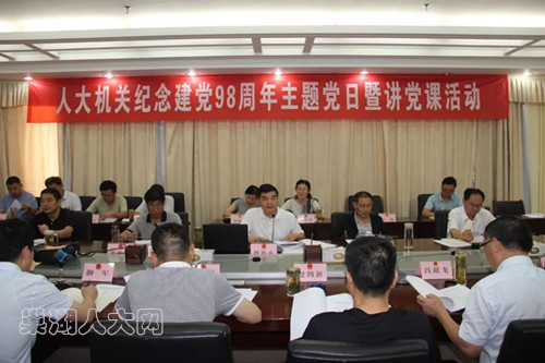 7月1日下午,市人大常委会机关党支部开展纪念建党98周年主题党日活动,周恩平以普通党员身份参加机关党支部主题党日活动,并以《不忘初心
