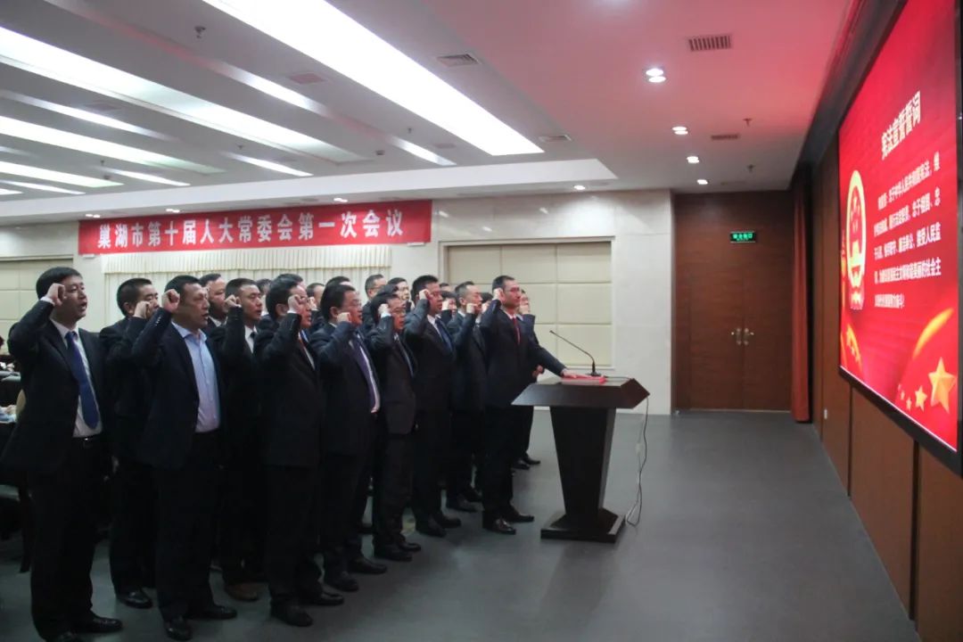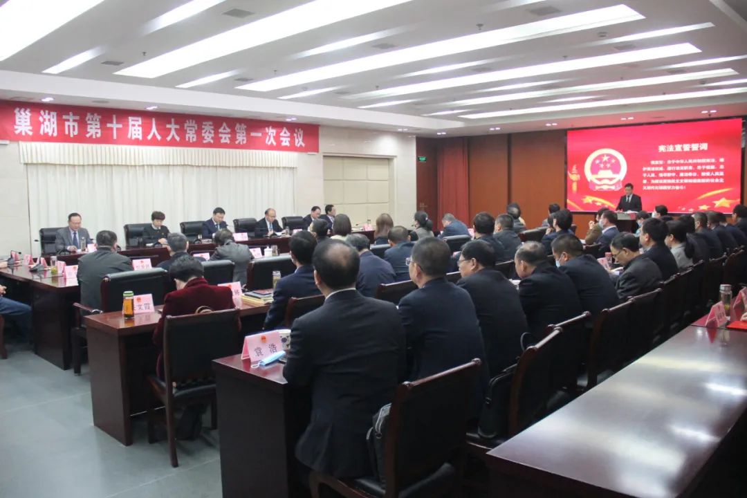 3月11日,巢湖市十届人大常委会第一次会议在市政务中心举行,市人大常委会主任、党组书记吴明哲主持会议并讲话,市委副书记、市长汪功胜应邀到会,市委常委、组织部长、统战部长张金平列席会议,市人大常委会副主任程素萍、江巢生、王成满、杭行出席会议。