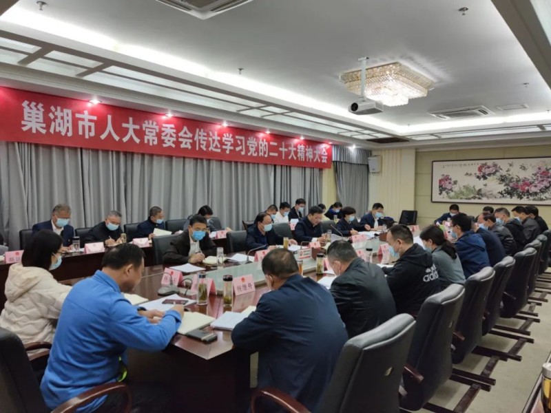 10月27日晚,巢湖市人大常委会召开传达学习党的二十大精神大会,深入学习贯彻党的二十大和二十届一中全会、十九届七中全会精神,传达学习省委常委会扩大会议和省、合肥市及巢湖市传达学习党的二十大精神大会等会议精神。市人大常委会党组书记、主任吴明哲主持会议并讲话,常委会领导程素萍、江巢生、杭行、周修斌出席会议,常委会驻会委员,机关各工委室、各街道人大工委负责人,机关全体人员参加会议。
