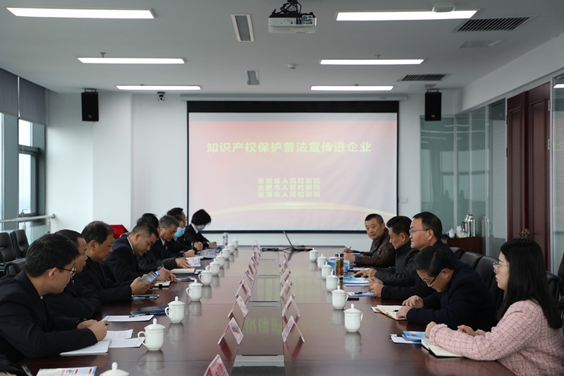 宣传组首先来到位于巢湖市黄麓镇的安徽富煌集团,参观了企业发展和文化建设长廊,特别是重点了解该企业科技创新、知识产权等方面的发展情况,主动提醒要积极强化自主研发技术保护意识,努力做大做强。随后,宣传组一行与该集团企业管理人员面对面座谈,介绍全省检察机关在企业知识产权保护方面的职能和近年来办理的典型案件,现场了解企业法律诉求,进一步引导企业负责人树立核心技术、核心研发人才保密和保护意识,更好促进企业持续健康发展。