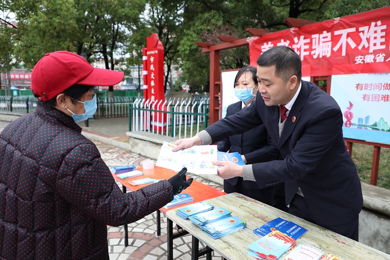 3月17日上午,安徽省院第四检察部副主任李江一行与合肥市院、巢湖市院检察干警组成普法宣传组,深入巢湖市围绕知识产权保护、《反电信网络诈骗法》、打击整治养老诈骗等主题开展法治宣传活动,巢湖市院党组书记、检察长李鹏飞参加有关活动。
